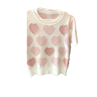 JJ Shopพร้อมส่ง เสื้อไหมพรมคอกลมแขนสั้น ลายหัวใจทั้งตัว "51025"