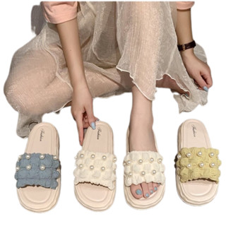 ประดับด้วยไข่มุข(พร้อมส่งจากไทย🇹🇭) ส้นสูง4cm ไตล์เกาหลีสุดฮิตเป่า รองเท้าแฟชั่นสตรี รองเท้าแตะแพลตฟอร์ม รองเท้าส้นเต