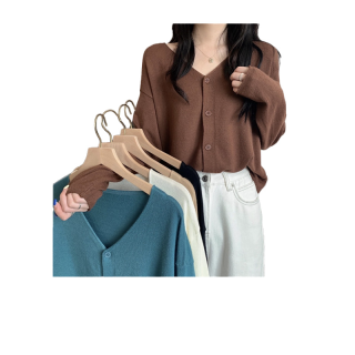เสื้อคาร์ดิแกน คอวี ผ้าถัก ทรงหลวม สไตล์อังกฤษ178133