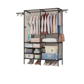 [ลูกค้าใหม่1บาท] ราวแขวนเสื้อ ราวตากผ้าเหล็ก มีชั้นวางของ ราวตากผ้าทรงสี่เหลี่ยม
