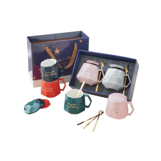 AT outlet ชุดแก้วหรูหรารูปแบบหินอ่อนเซรามิคแก้ว MRS MR คู่ Lover ของขวัญ พร้อมช้อนและฝาปิด