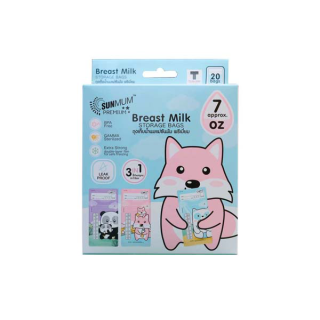 SUNMUM PREMIUM (NEW) ถุงเก็บน้ำนมแม่ซันมัม พรีเมี่ยม ขนาด 7ออนซ์ จำนวน20ถุุง ใช้งานง่าย พิเศษมีแถบบอกอุณหภูมิ BPA Free