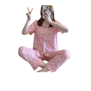 ชุดนอนแขนสั้น + กางเกงขาสั้น 15 ลาย ผ้าคอตตอน ผ้านิ่มมาก กระดุมหน้า คอปก ฟรีไซส์ DD