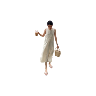 [ลด 30฿ ใช้โค้ด INC3FA3] Maxi dress เดรสยาวสไตล์มินิมอล ผูกเชือกหลัง รูดเชือกผูกโบว์ด้านหลัง ผ้าคอตตอนผสมลินิน