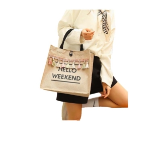 กระเป๋าผ้ากระสอบใบใหญ่ Hello weekendมีพู่ กระเป๋าถือ