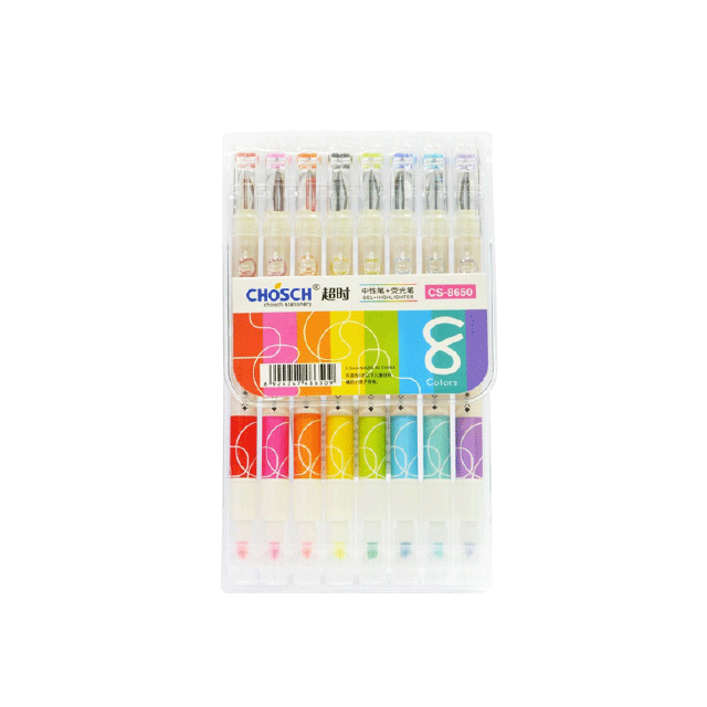 Chosch 8650 ปากกาเจล ขนาด 0.5mm ปากกาหัวเพชร + ไฮไลท์ สีตามด้าม แพ็ค 8 แท่ง 8 สี ถูกที่สุด ปากกา เครื่องเขียน ราคาถูก