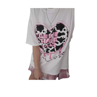 ส่งไวจากไทยmaisidamall เสื้อโอเวอร์ไซซ์ เสื้อโอเวอร์ไซซ์แขนสั้นสีขาว เสื้อผ้าวัยรุ่นแฟชั่นเกาหลี ลายการ์ตูน คอกลม สตรีท น่า หัวใจชมพู มี 2 สี