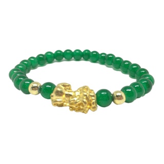 Best-Seller Pixiu Pi Yao ปี่เซียะเรียกทร้พย์ สร้อยข้อมือ สีเขียวมรกต ขนาด 9 มม. by siamonlineshop